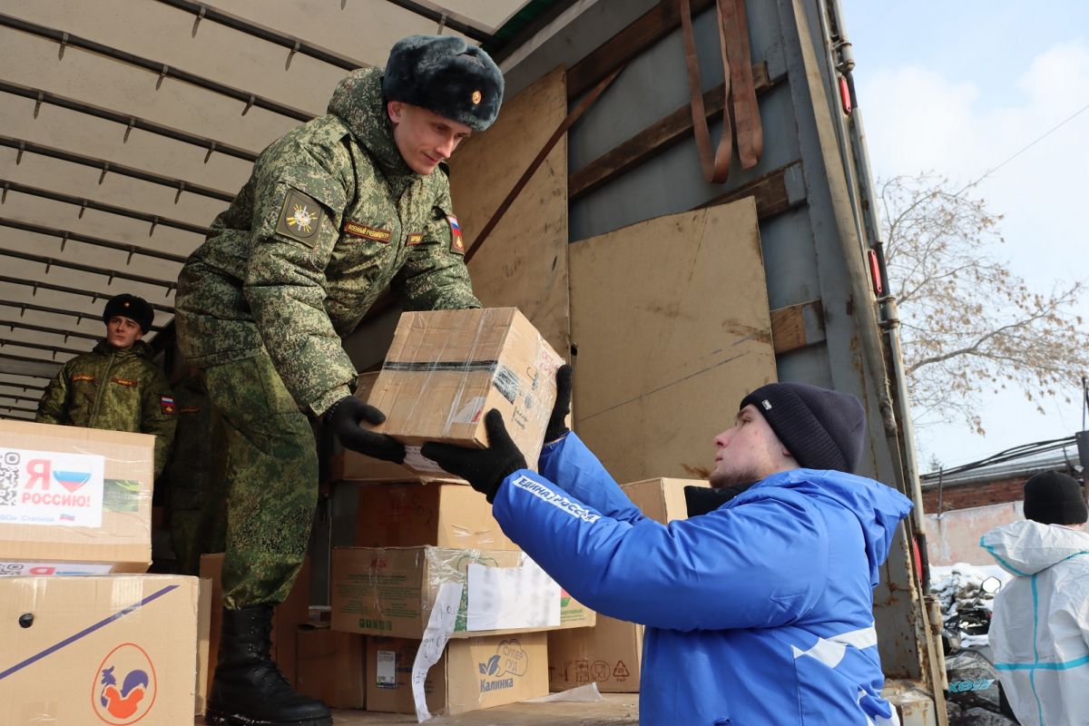Загрузить собранную помощь в фуру помогли активисты «Единой России» и молодогвардейцы, студенты Военного учебного центра при ОмГТУ, сотрудники Гуманитарного центра Омской области и волонтеры.